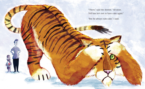 no more cake! What’s a tiger supposed to eat? A bossy adult is made to look silly and a