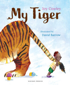David Barrow’s new illustrations for My Tiger—which are lovely—just give you the impression of what happens. When you get to the end of the book, there’s nothing gruesome, just a pair of boots.